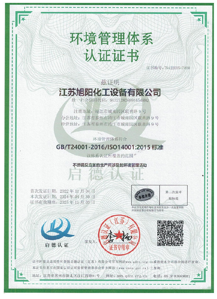 江蘇旭陽化工設(shè)備有限公司專業(yè)從事各類化工、環(huán)保、制藥、發(fā)酵、食品、新材料、鋰業(yè)等項目設(shè)計、制造及壓力容器的生產(chǎn)制造,是一家集研發(fā)、生產(chǎn)和進出口貿(mào)易于一體的高科技企業(yè)。